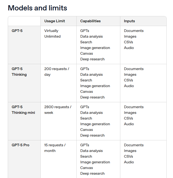 - Unlimited GPT‑5 messages, with generous access to GPT‑5 thinking, GPT 5 Pro